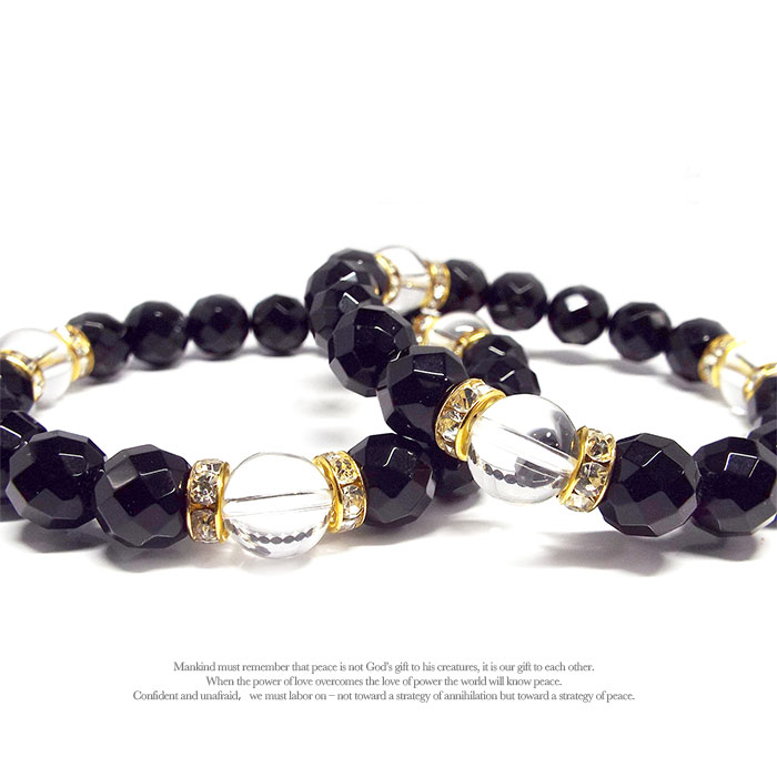 天然石 パワーストーン ブレスレット ペアアクセサリー 水晶 オニキス ペアセット