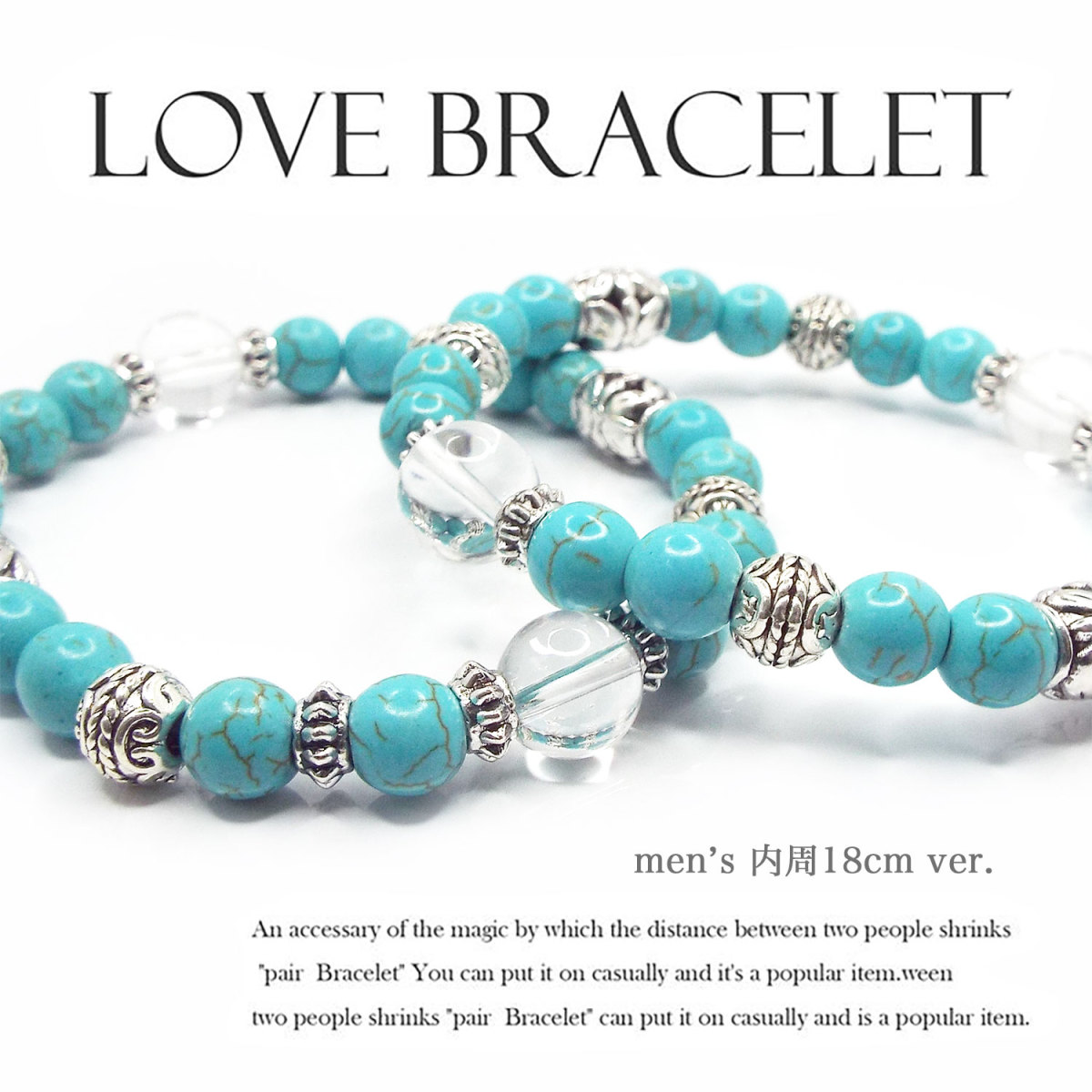 天然石 パワーストーン ブレスレット ペア 内周18cm ver. 水晶 ターコイズ アクセサリー