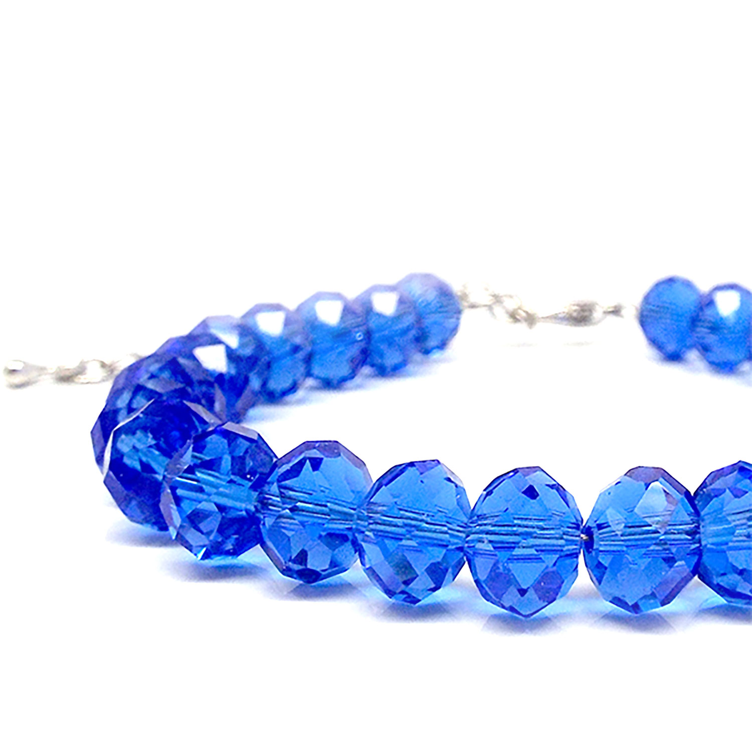 ガラスビーズ ブレスレット サファイア 約6×4mm クリスタルガラス ボタンカット 天然石 パワーストーン レディース アクセサリー