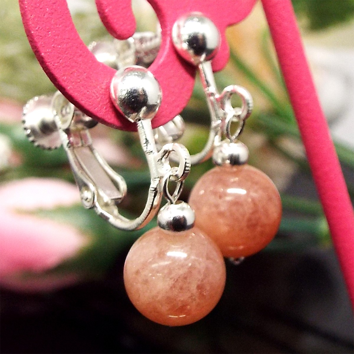 天然石 イヤリング サンストーン 日長石約8mm パワーストーン アクセサリー