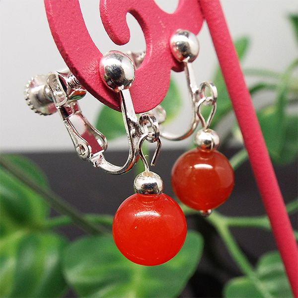 天然石 イヤリング カーネリアン 赤瑪瑙 約4mm パワーストーン アクセサリー