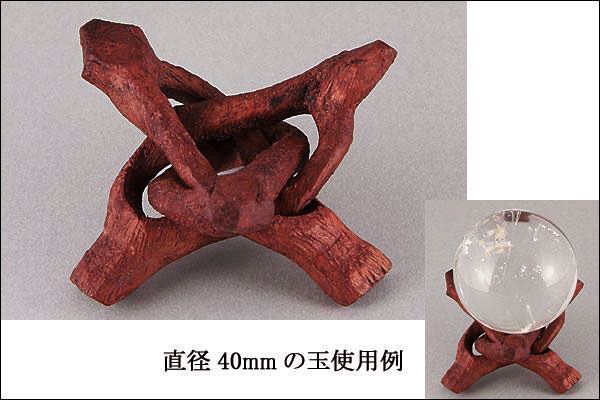 知恵の輪のように組み合わさった三本の木を組み立てる玉台です。もともとは一本の木から削りだしたもので、ばらばらにはなりません。形の面白さと木の雰囲気をそのまま残した素朴さが合わさった、とても表情豊かな玉台です。アクリルの玉台では実用一辺倒過ぎる、メタルの玉台だと輝きが強すぎる、もっとナチュラルに丸玉を楽しみたいニーズにぴったりです。3サイズあり、40mmから90mm程度の丸玉まで適応です。