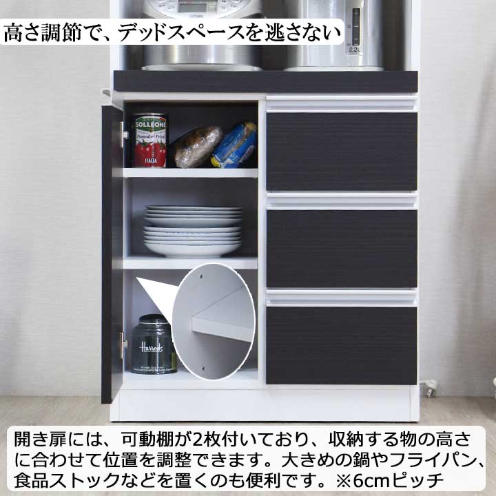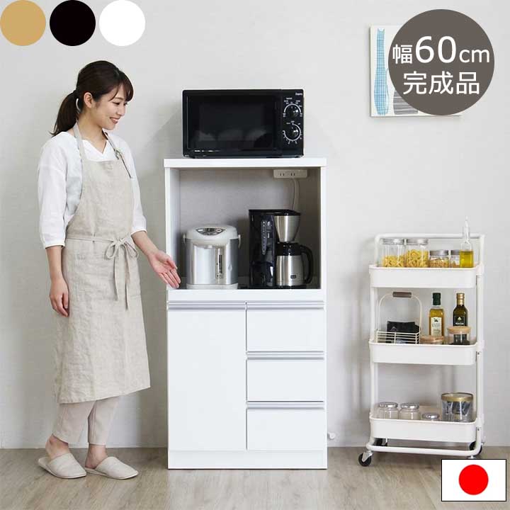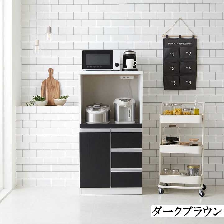 | 商品の特徴 | 引出しが多く食器・食材の収納にも優れた、一人暮らし・新婚の方に適したコンパクトなレンジ台。 シンプルデザインで、カラーも3色から選べるので、どんなお部屋にも馴染みます。 |