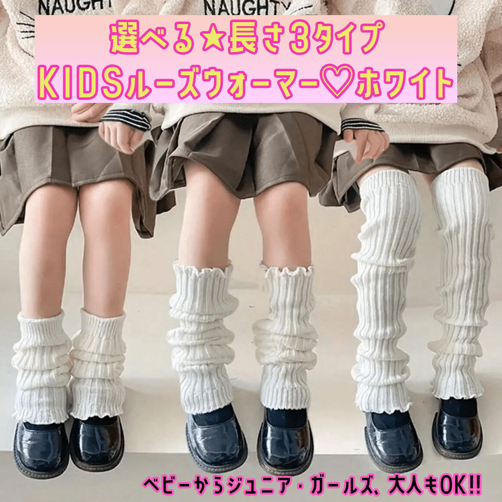 選べる★長さ3タイプ レッグウォーマー ルーズ ホワイト 白 KIDS ルーズソックス ギャル コギャル 令和ギャル 子ども用 キッズ ダンス イベント 発表会 衣装