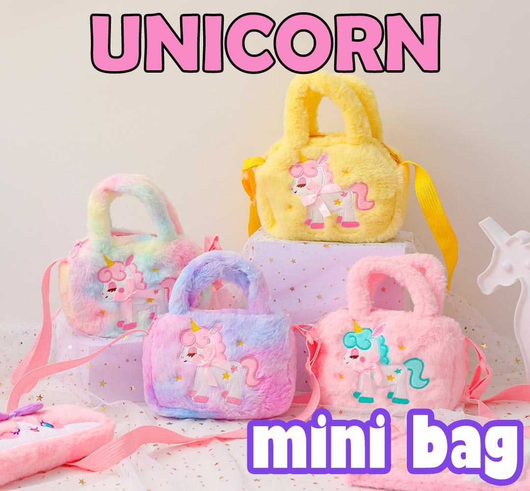 【ユニコーン★ミニバッグ】キッズ ミニ バッグ ユニコーン ふわふわ かわいい おしゃれ プリンセス ピンク 紫 レインボー イエロー