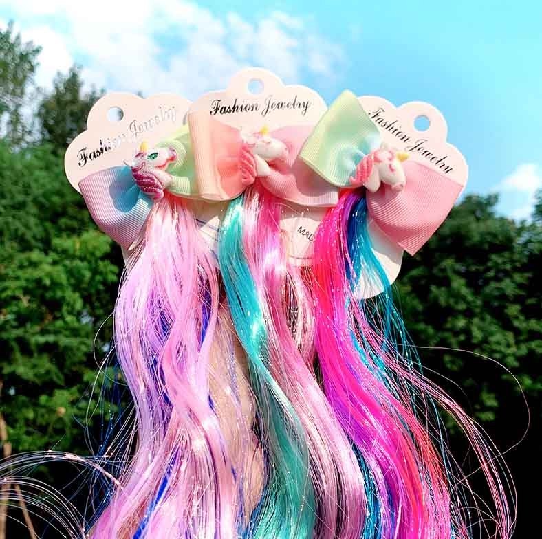 キッズ ワンタッチ エクステ【キュンッ!とするユニコーンの可愛いカラフルエクステ】ユニコーン 雑貨 グッズ 子供 女の子 つけ毛