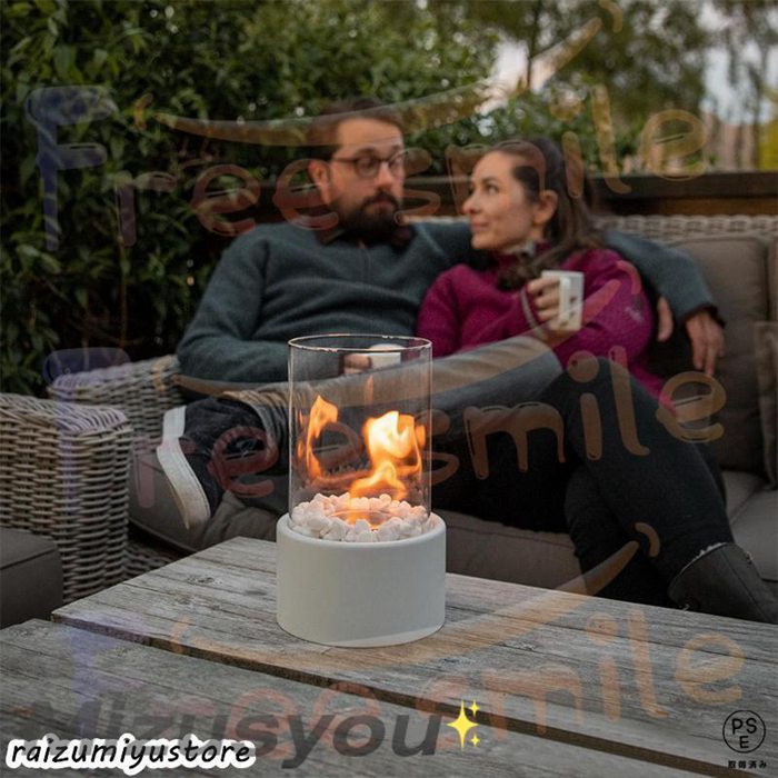 卓上暖炉 バイオエタノール暖炉 円形 卓上 ウィンドガード付 グラスファイヤー 小型 無煙 無臭 クリーン燃焼 卓上エタノール暖炉 キャンプ 暖炉 室内 アウトドア