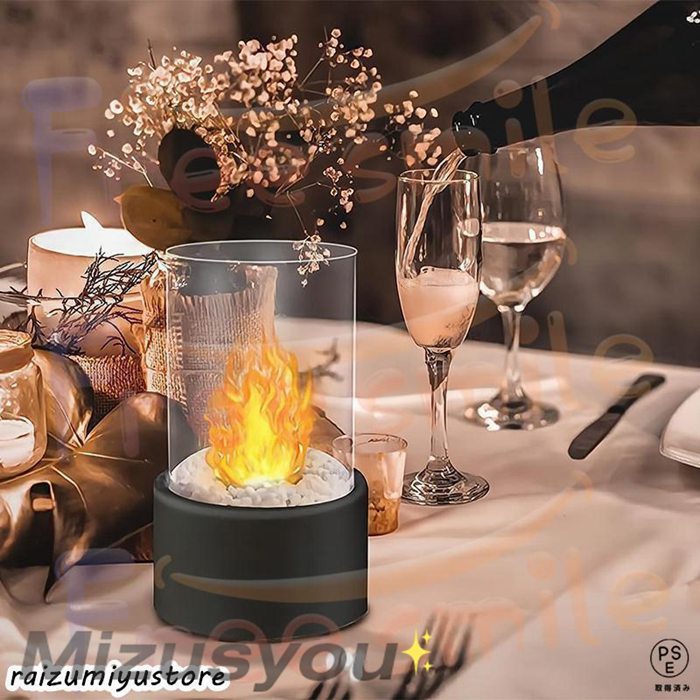 卓上暖炉 バイオエタノール暖炉 円形 卓上 ウィンドガード付 グラスファイヤー 小型 無煙 無臭 クリーン燃焼 卓上エタ
