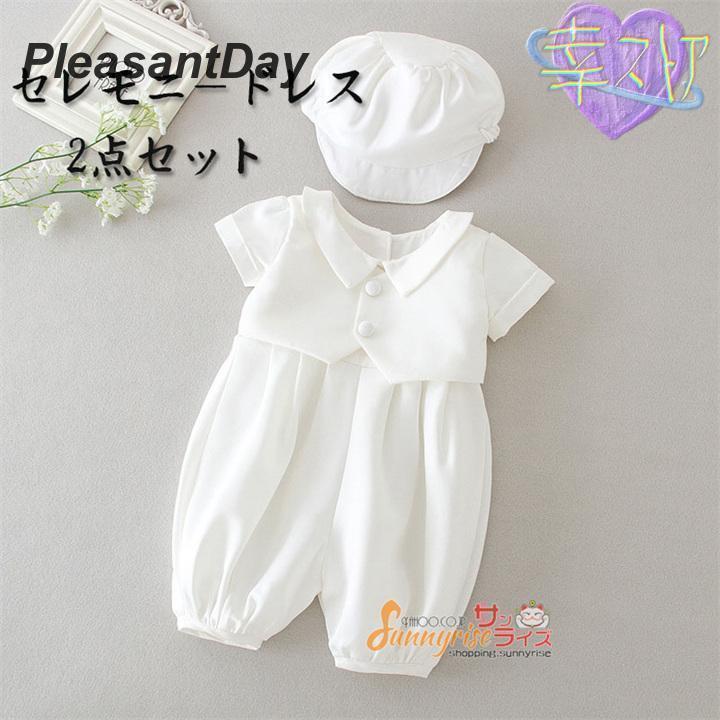 ベビーセレモニードレス 男の子 2点セット 帽子付き 退院着 赤ちゃん 新生児 セレモニーセット 白 お宮参り 出産祝い お食い初め プレゼント お誕生日 ギフト 写真用 記念撮影