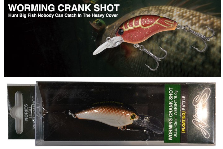 ウィード、リーズ、レイダウンなど、誰もが根掛かりを嫌ってテキサスリグやラバージグで攻めてしまうシャローカバーを、ハードベイトの集魚効果でスピーディに攻略していけるのがノリーズ「ワーミングクランクショット」。