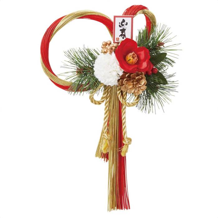 しめ縄 しめ飾り しめ縄飾り しめなわ_迎春水引リース 椿 1個_58-184-7-2_8730-5940
