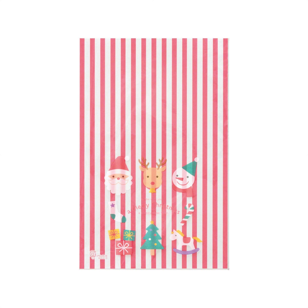 ●素材/OPP0.03mm厚 両面印刷(表:透明地に柄と文字 裏(内):白地にストライプ)