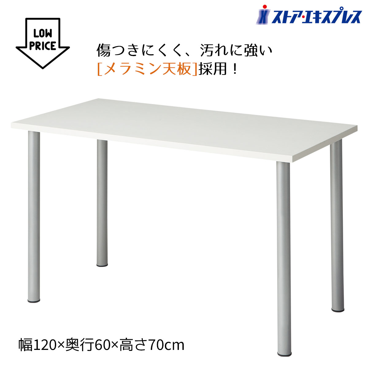 ●素材/天板:低圧メラミン化粧板24mm厚 エッジ:塩化ビニル 脚部:スチール製 粉体塗装