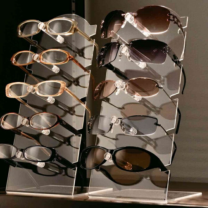 複数並べてもスッキリした印象のメガネディスプレイ。