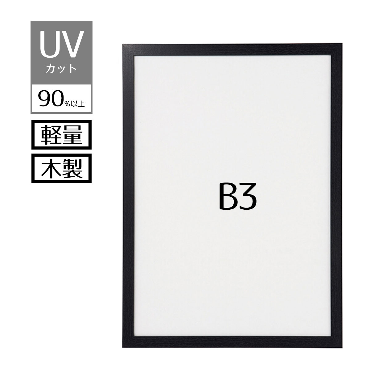 ポスターパネル ポスターフレーム 額縁 フレーム_【紫外線カット!】軽量木製ポスターパネル(UVカット) ブラック B3 1枚_61-220-3-4_6380-1255