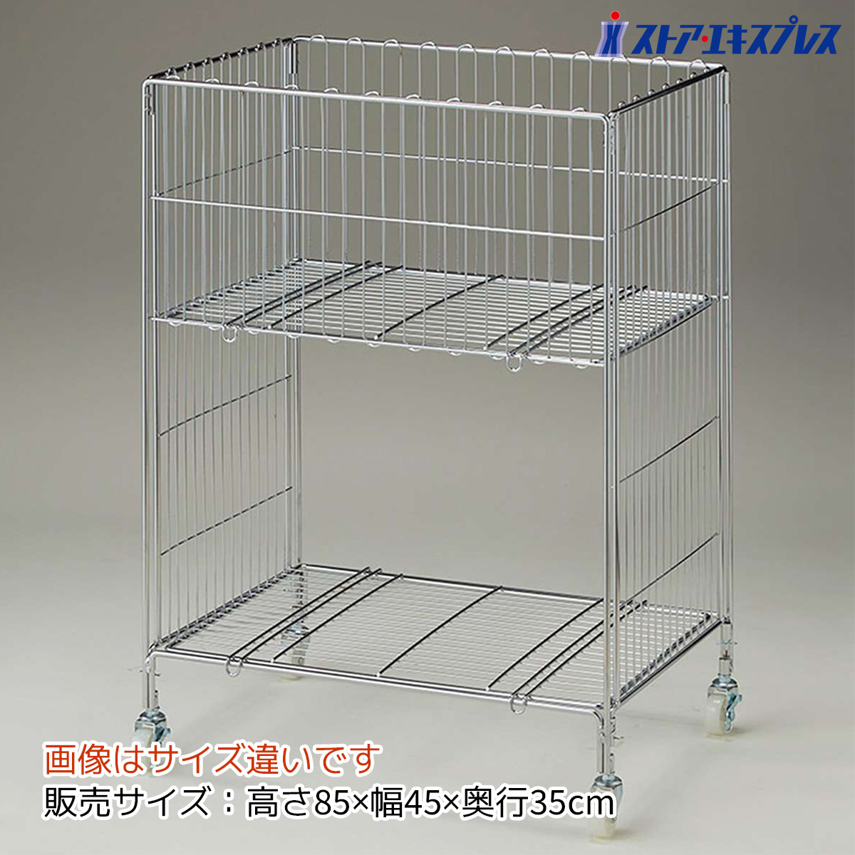 バスケットワゴン 販売台 陳列台_ワイヤー2段ワゴン クローム 幅45×奥行35cm 1台_61-753-27-1_2330-1430