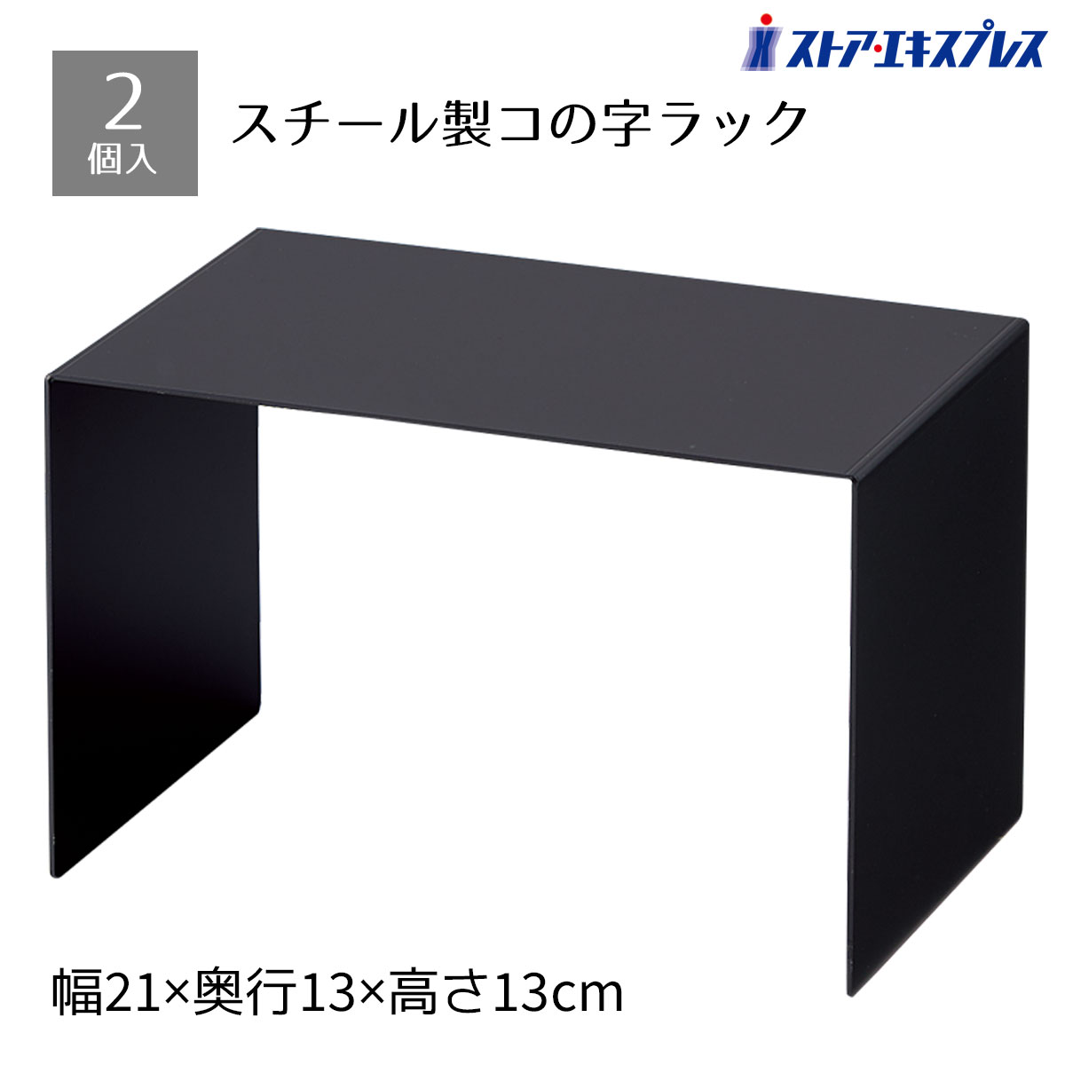 【2個入り】スチール製コの字ディスプレイ ブラック 幅21×奥行13×高さ13cm_61-780-12-3_7271-24
