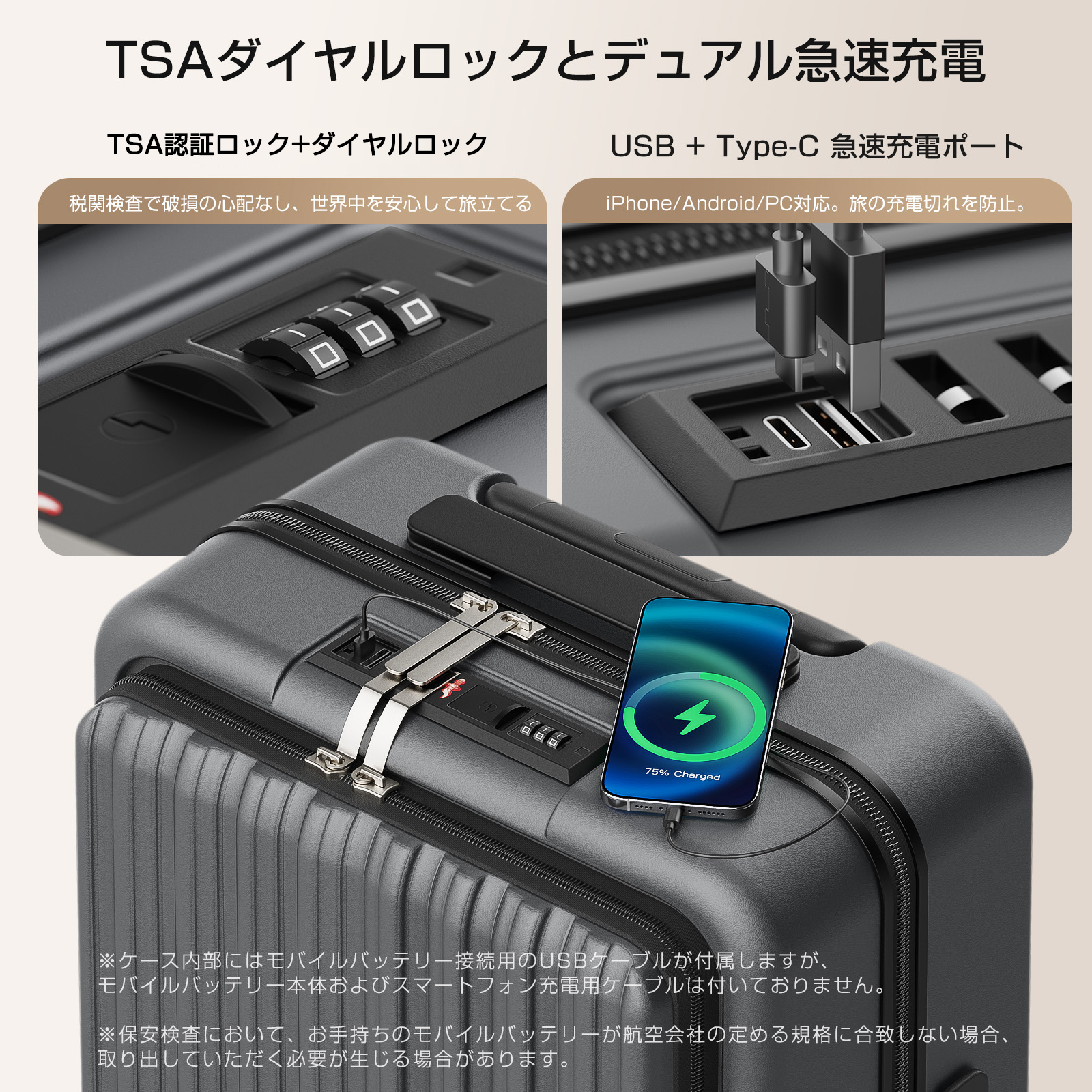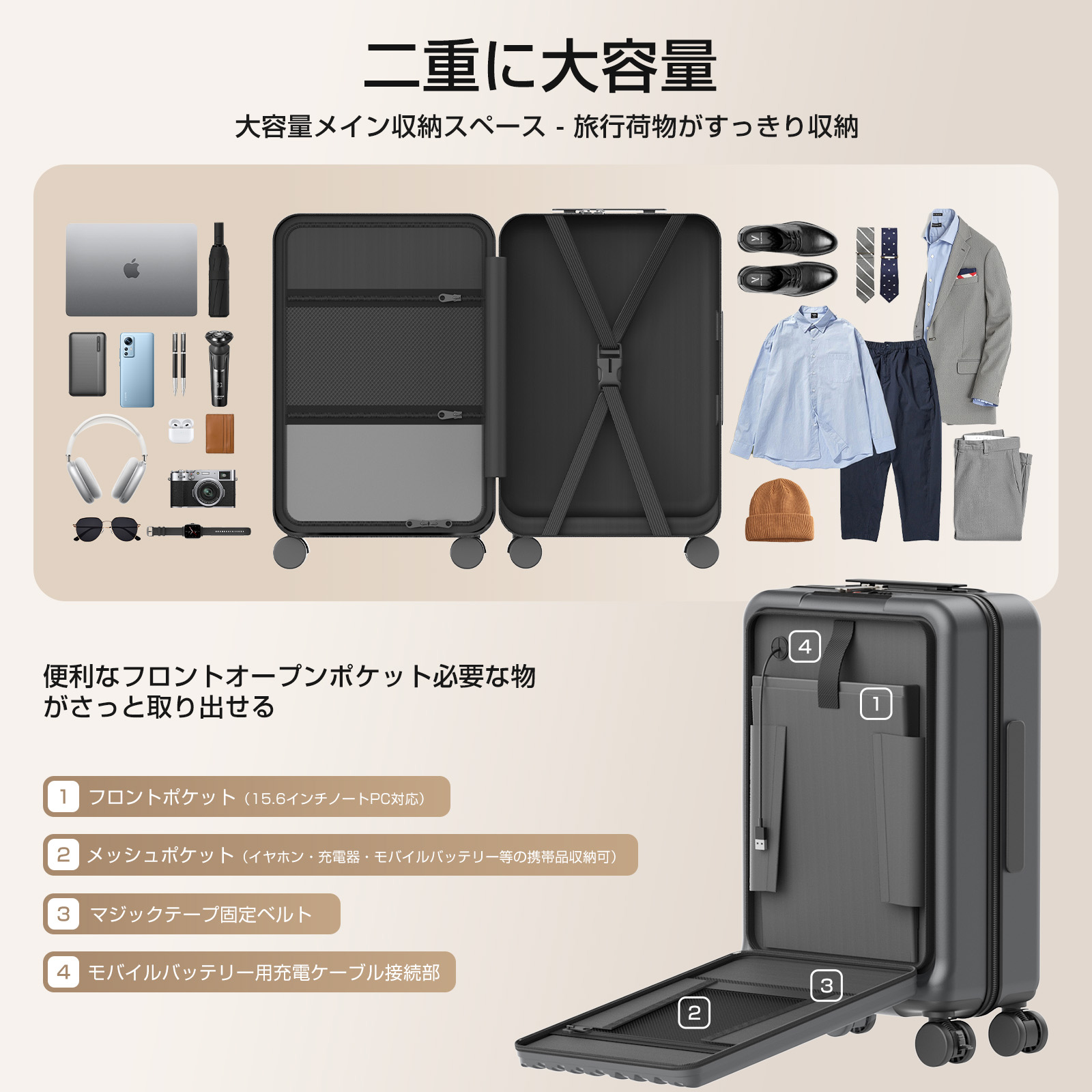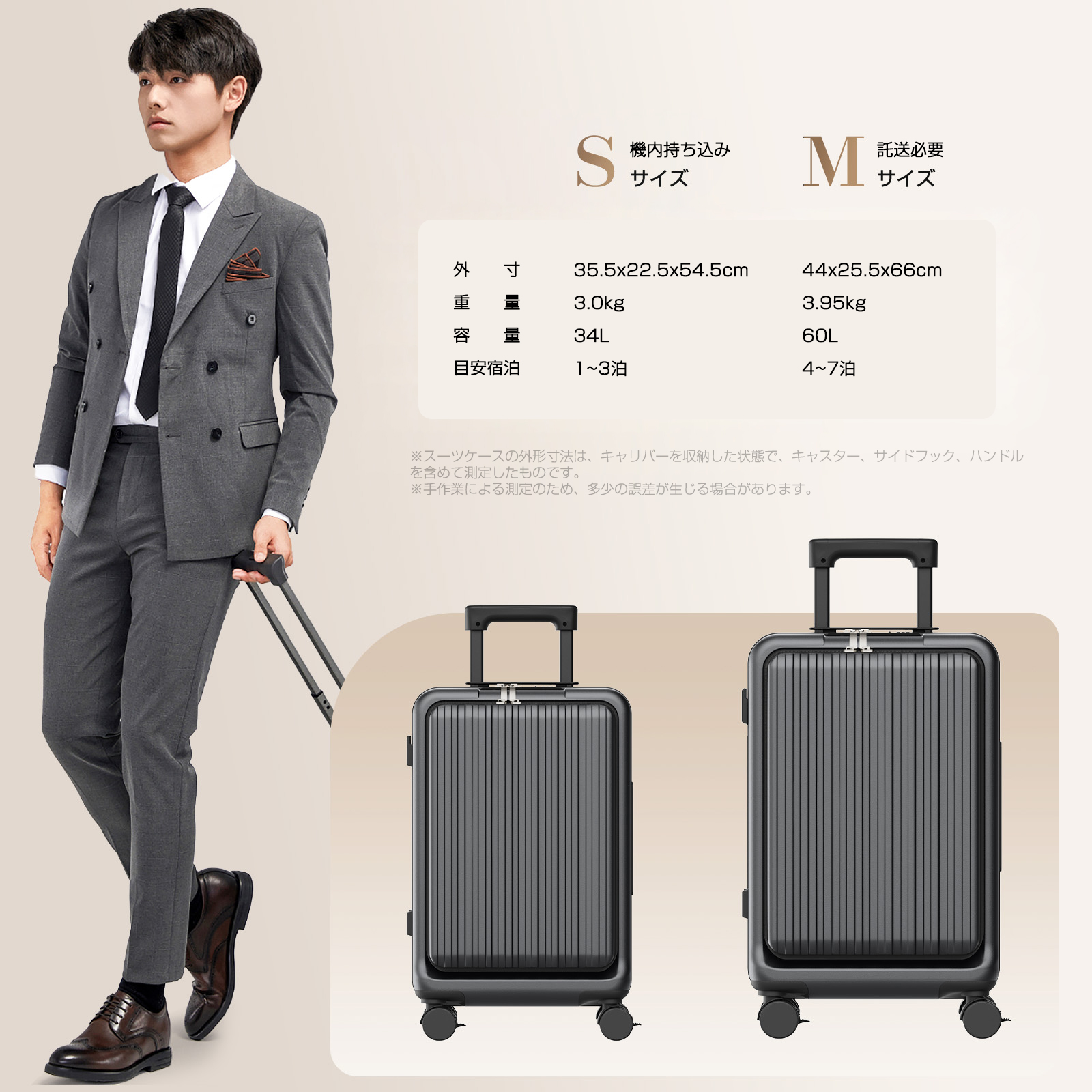 サイズにより6980-8580円SALE ストッパー付き スーツケース 機内持ち込み キャリーケース フロントオープン USB/Type-Cポート S/Mサイズ 軽量 大容量 修学 旅行