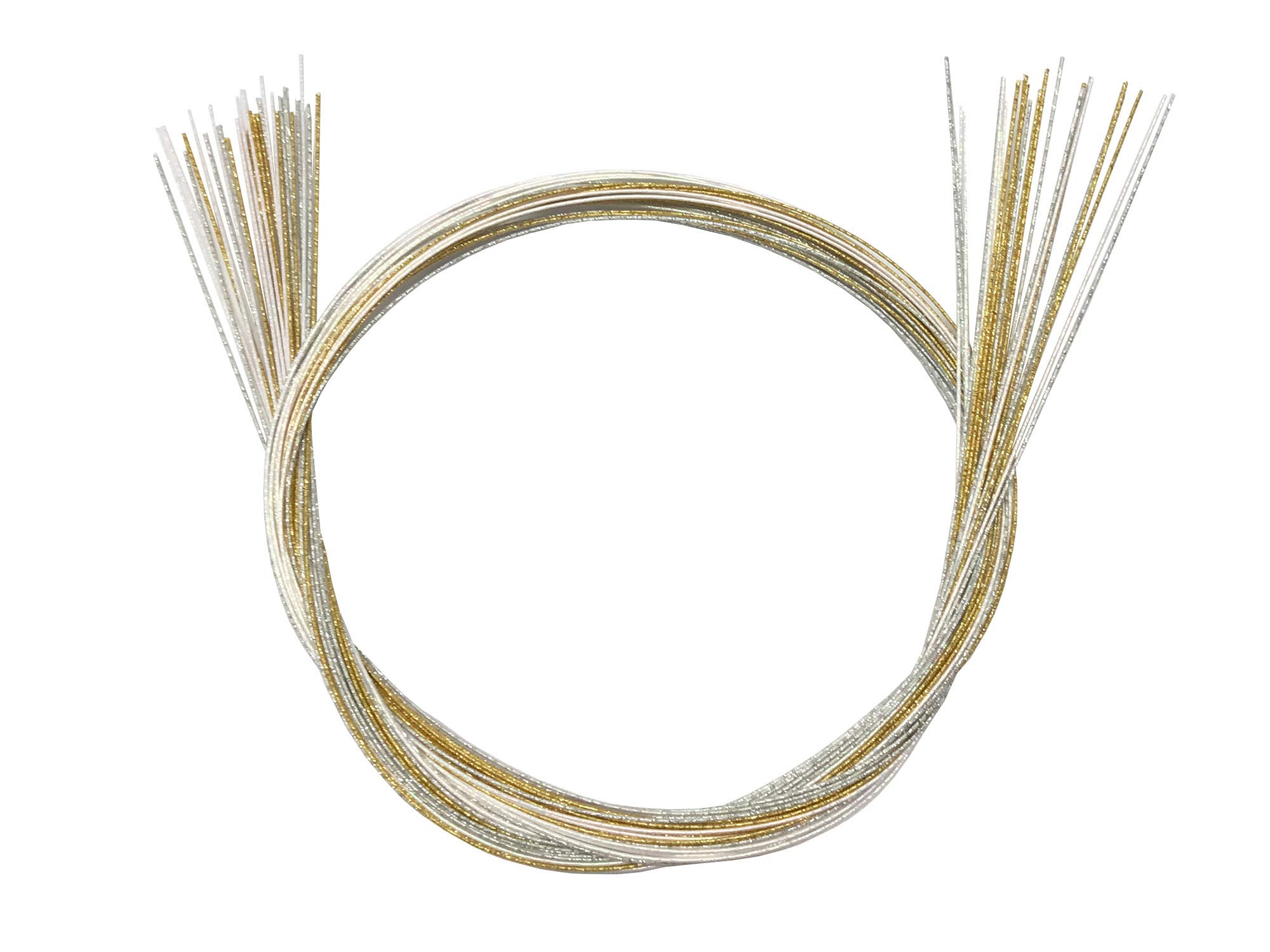 • 紙を紙縒り状にした「芯」に糸とプラスチックフィルムを混ぜ合わせた「紙縒り」を巻いた水引です