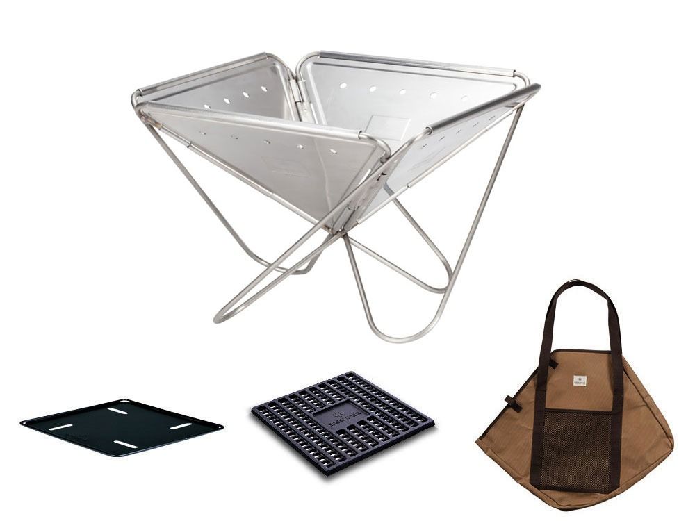 焚火台というジャンルは、この一台から始まりました。美しいデザインは、修理の必要がないほど頑丈です。料理も会話も楽しくする一生の相棒として、子どもに火を教えるきっかけとして、多くの人々に愛される名品です。焚火を始めるのに必要なアイテムをリーズナブルなセットにしました。・サイズ:焚火台L/455x455x315(h)mm、焚火台ベースプレート/450x450x9(h)mm、炭床Pro L/310x310x20(h)mm・焚火台L コンプリート収納ケースサイズ:700x590x70(h)mm・重量:焚火台L/5.5 kg、焚火台ベースプレート/1.9kg、炭床Pro L/重量:3.9kg、焚火台L コンプリート収納ケース/0.6kg・セット内容:焚火台L / 焚火台ベースプレート / 炭床Pro L / 焚火台L コンプリート収納ケース※オンラインショップでご購入の際のスノーピークポイントは付与されません。 品番 SET-112S