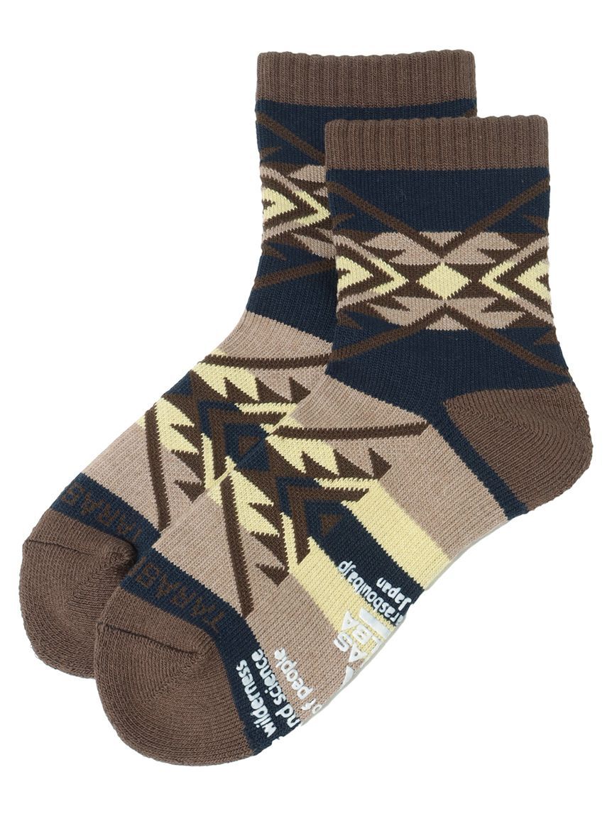 タラスブルバ TARAS BOULBA レディース ネイティブ柄ローゲージミドルソックス トレッキング アウトドア レディースソックス レディース 22-25 ネイビー/ブラウン TBA-S24-014-046 NVBR
