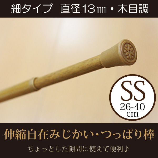 つっぱり棒 細タイプSS 木目調 格安 伸縮自在 つっぱりポール 伸縮幅 約26〜40cm 直径13mm 目隠し 棚 在宅 ワーク 勤務