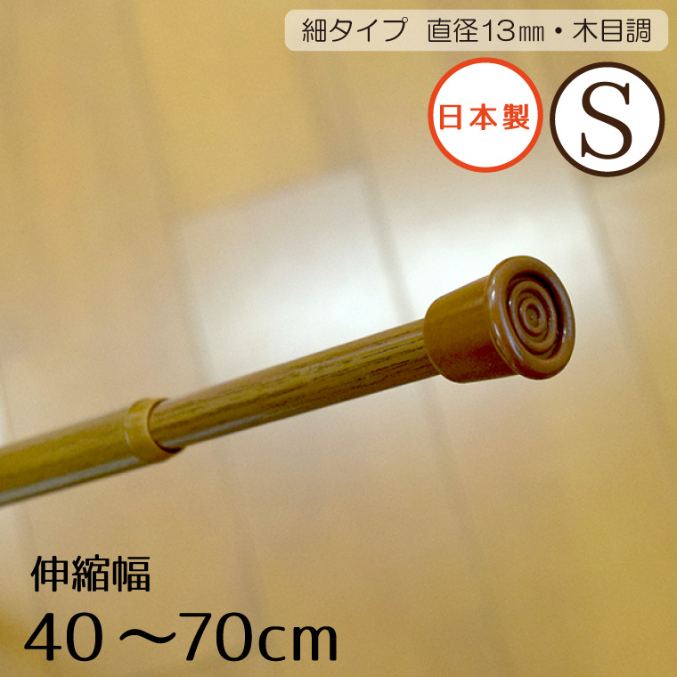 つっぱり棒 おしゃれ 細タイプS 格安 伸縮自在 つっぱりポール 木目調 伸縮幅 約40〜70cm 直径13mm のれん カフェカーテン 目隠し 棚 勤務