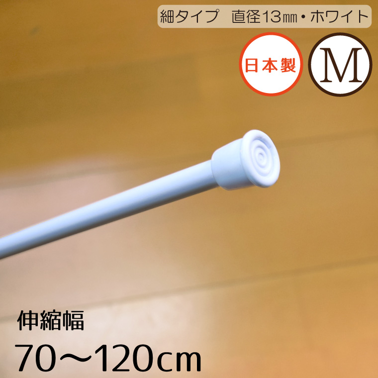 つっぱり棒 細タイプM つっぱり棒 ホワイト 格安 伸縮自在 つっぱりポール 伸縮幅 約70〜120cm 直径13mm のれん用 目隠し 棚 在宅 ワーク 勤務