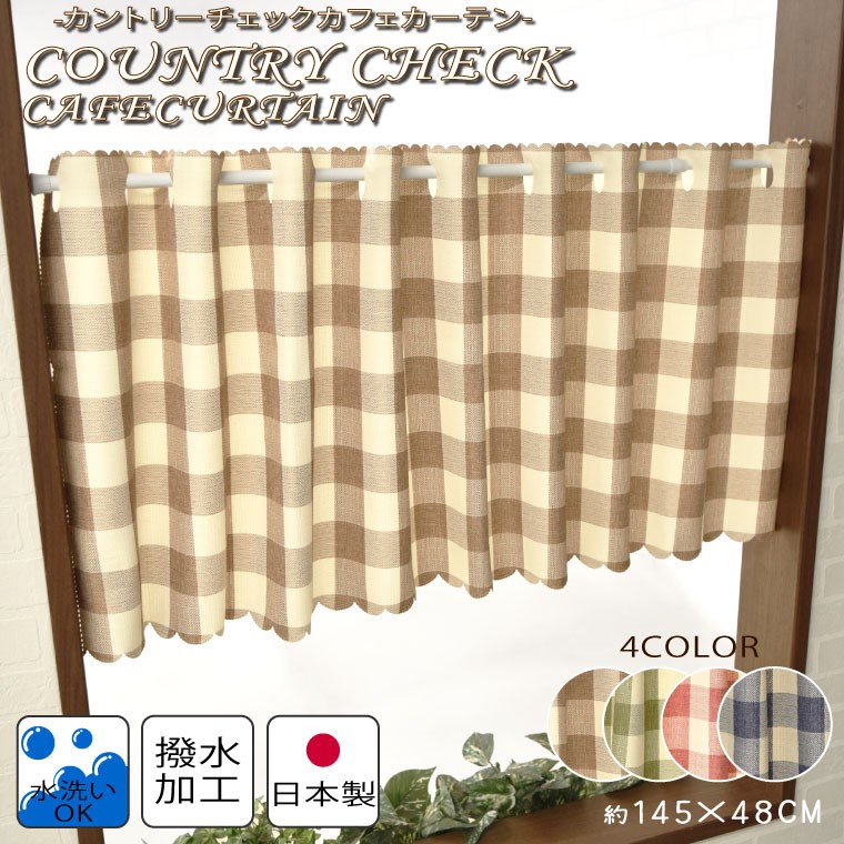 カフェカーテン おしゃれ 北欧 小窓 小さい カーテン 洗える 撥水加工 145×48cm かわいい 目隠し 浴室 お風呂 脱衣所 洗面 キッチン カントリーチェック