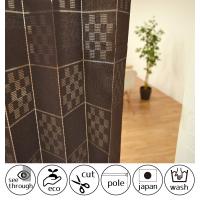 |間仕切りカーテン アコーデオンカーテン パタパタカーテン チェッカー ブラウン 約100×250cm のれん フリーカット 突っ張り棒 おしゃれ 目隠し 遮熱 洗える