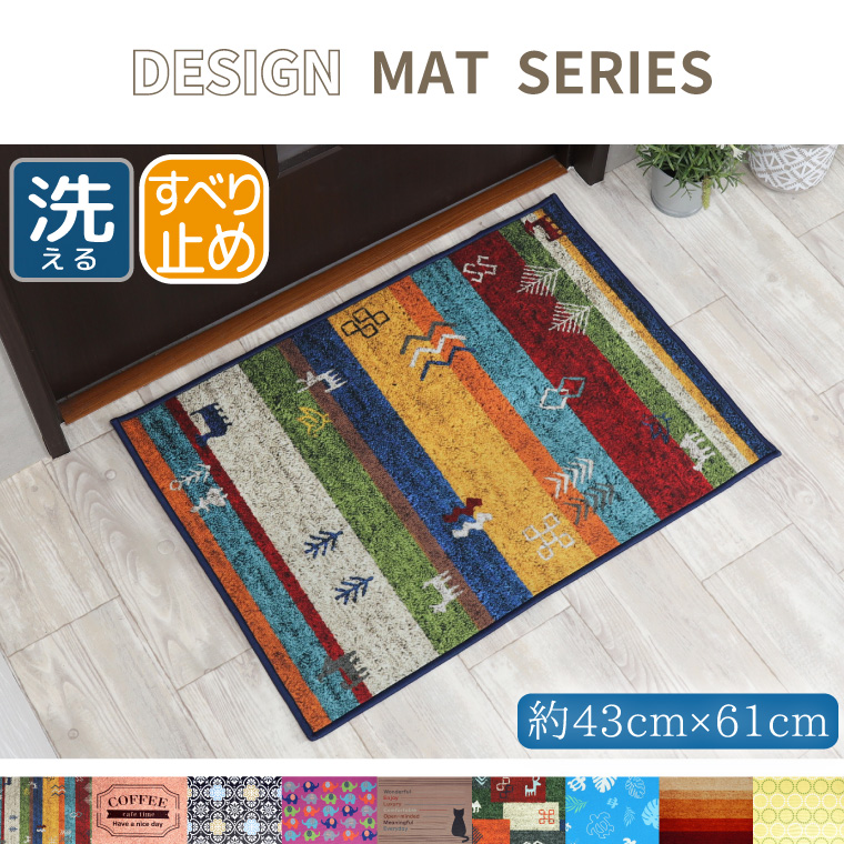 玄関マット 1000円 送料無料 屋内 室内 おしゃれ 洗える 北欧 約43×61cm かわいい キッチンマット アクセントマット 滑り止め付き モダン 転写プリント
