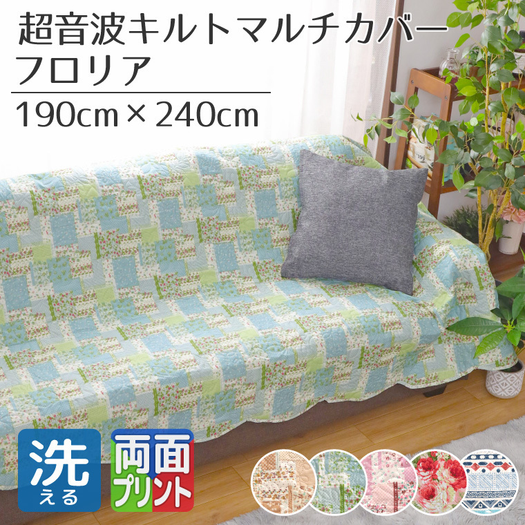 マルチカバー 長方形 ソファ 洗える 190×240cm こたつ布団カバー パッチワーク柄 花柄 キルト加工 両面プリント キルトラグ ベッド カバー フロリア