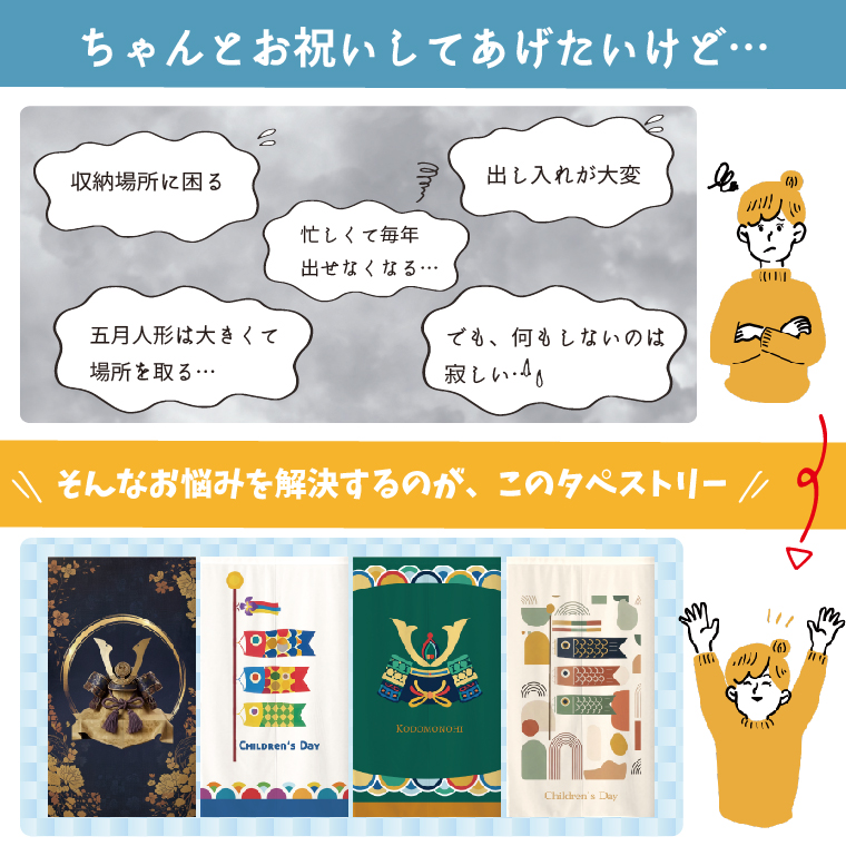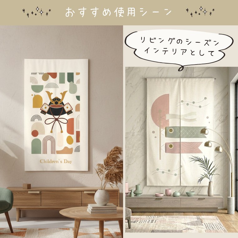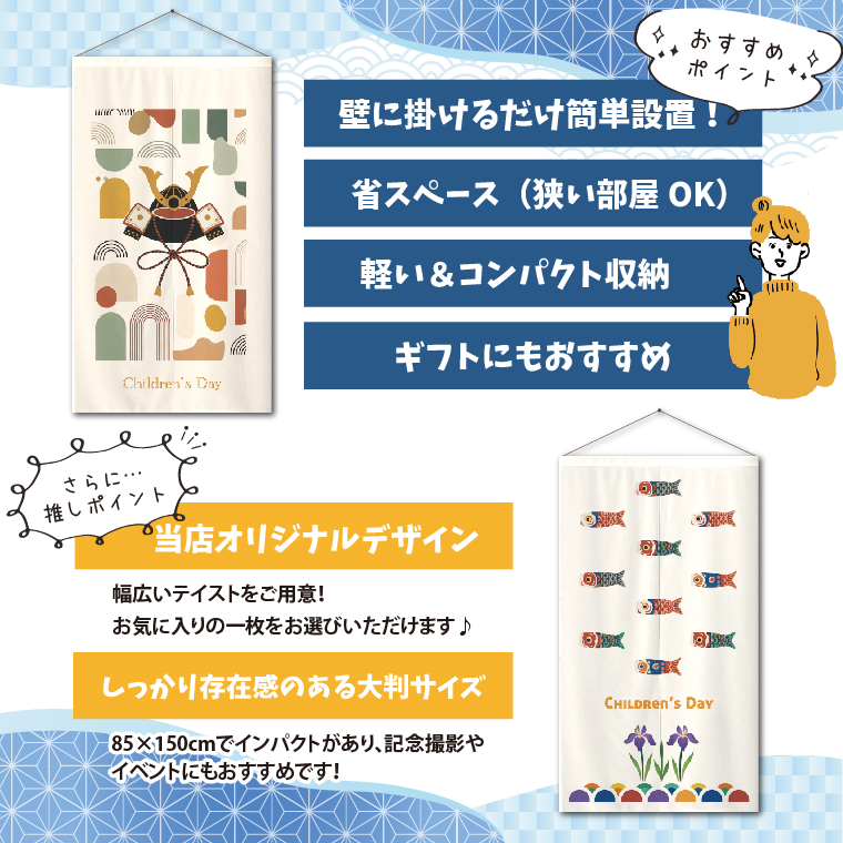 ・インテリアに馴染む、和モダンやカラフルなデザインの端午の節句タペストリーです。