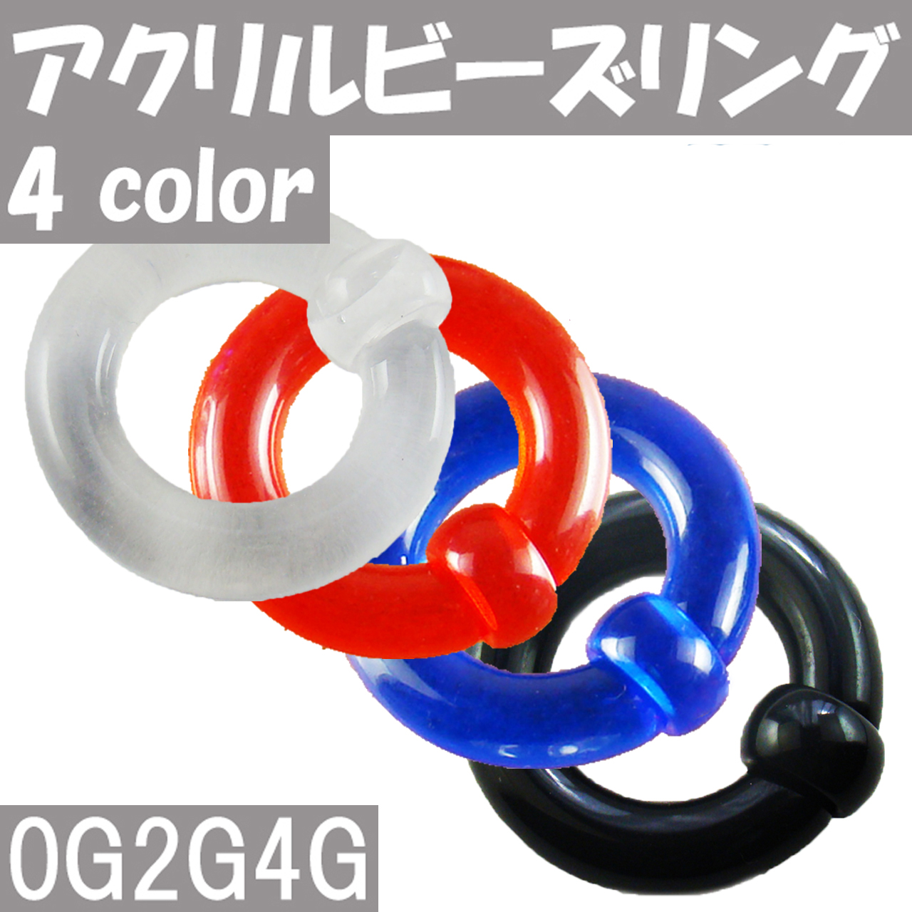 定番ボディピアスのビーズリング。装着部分が映えるポップカラー、アクリル素材なのでトラガス ヘリックスの装着も簡単です。