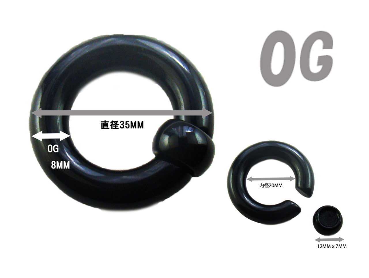 ・【サイズ】0G(8.0mm) 内径/約20mm×ボール径/12mm