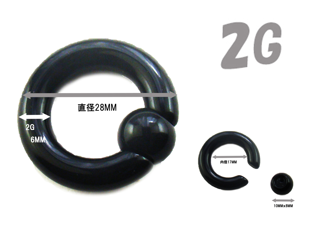 ・【サイズ】2G(6.0mm) 内径/約17mm×ボール径/10mm