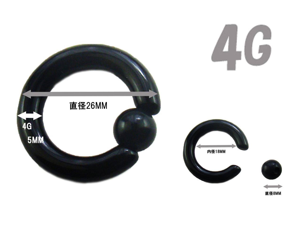 ・【サイズ】4G(5.0mm) 内径/約18mm×ボール径/8mm