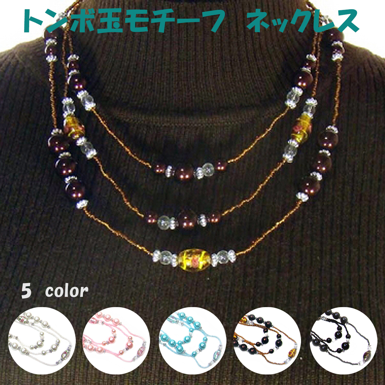 ネックレス レディース ビーズ パール トンボ玉 50代 40代 30代 20代 おしゃれ シンプル 結婚式 パーティー アクセサリー 3連