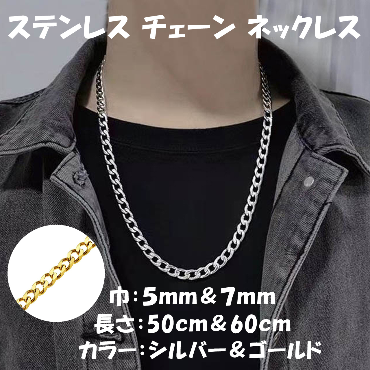 ネックレス チェーン メンズ レディース ステンレス 喜平 金属アレルギー対応 ゴールド シルバー 50代 40代 シンプル 50cm 60cm