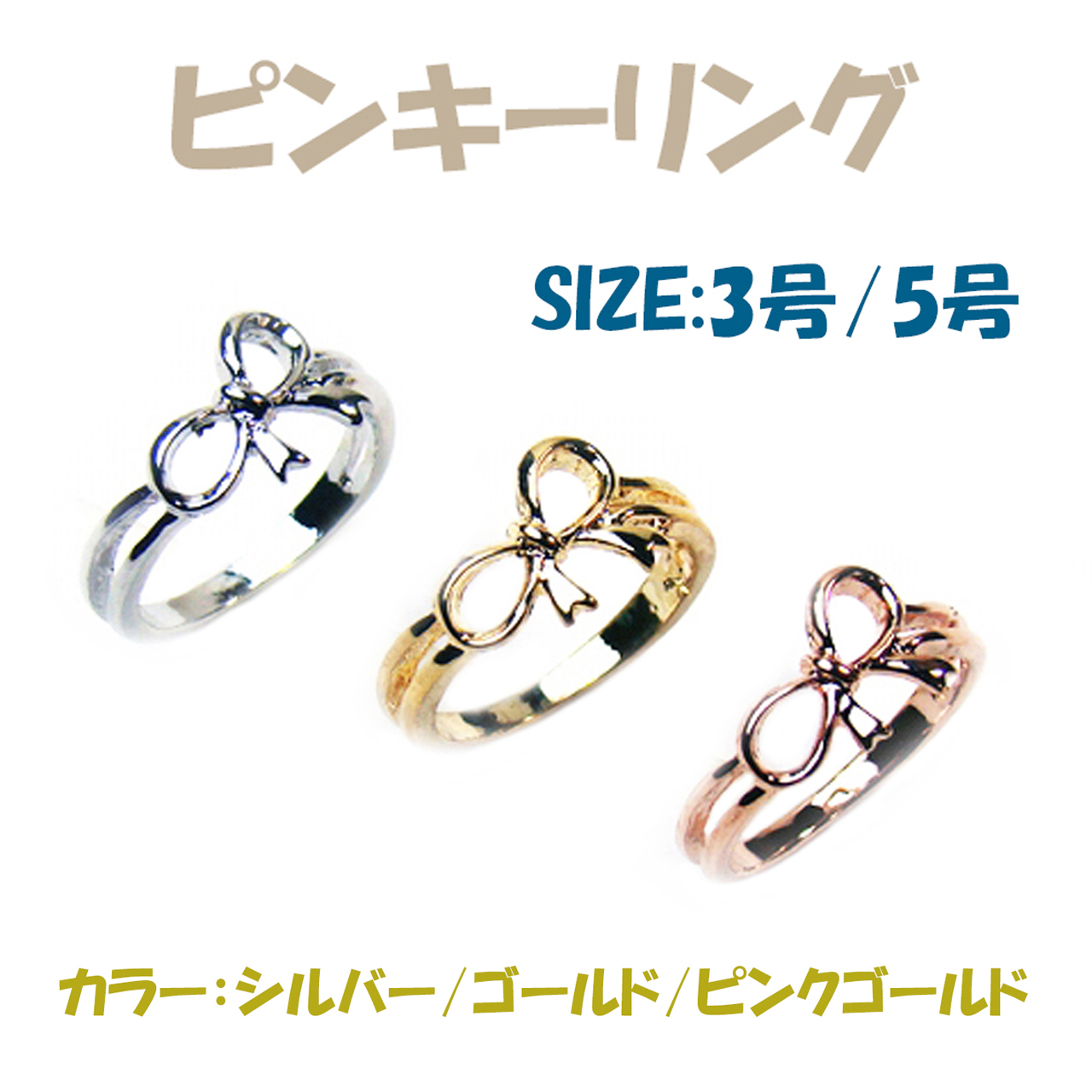 指輪 レディース ピンキーリング シンプル 40代 50代 3号 5号 ピンクゴールド おしゃれ 普段使い 可愛い リボン