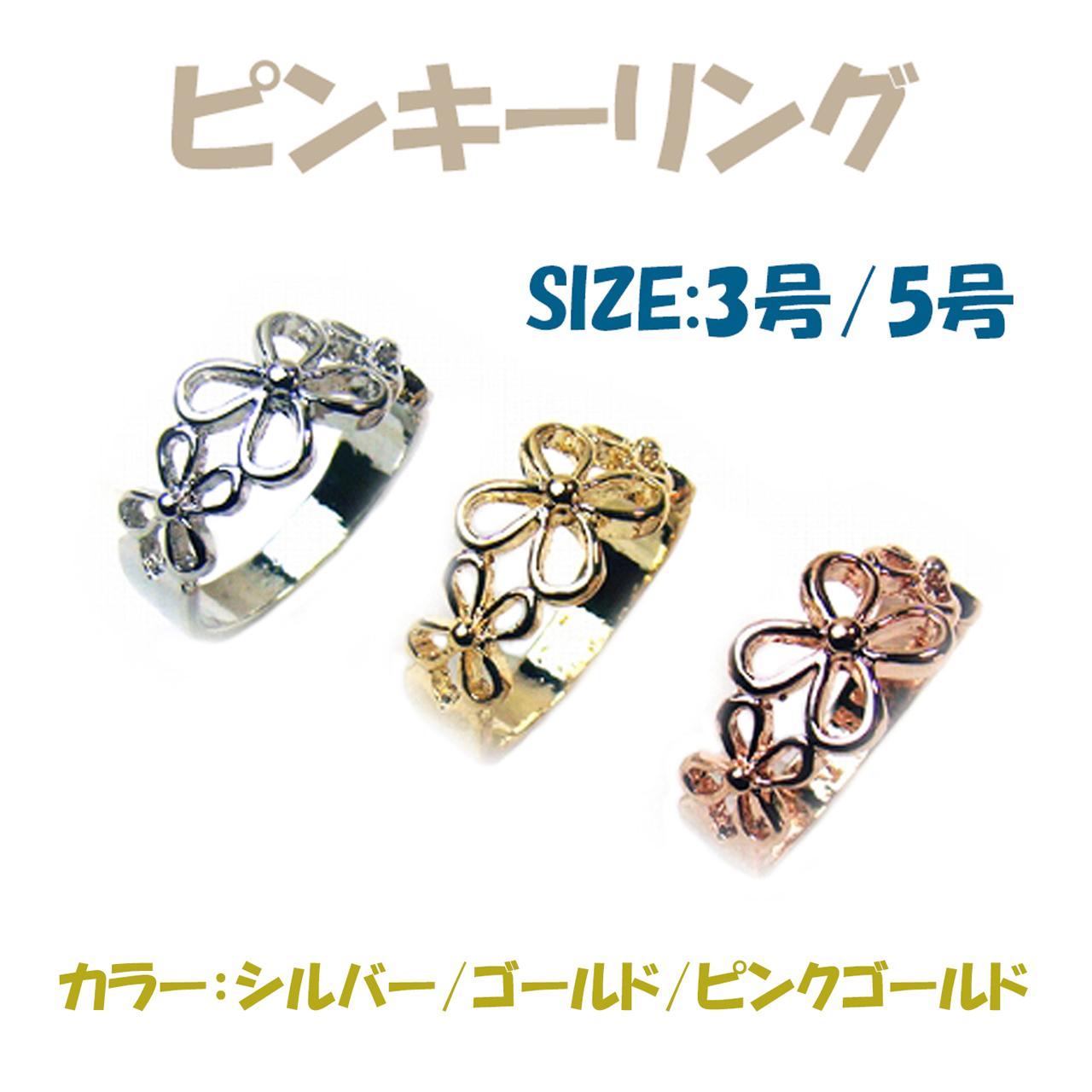指輪 レディース ピンキーリング シンプル 40代 50代 3号 5号 ピンクゴールド おしゃれ 普段使い 可愛い フラワーデザイン