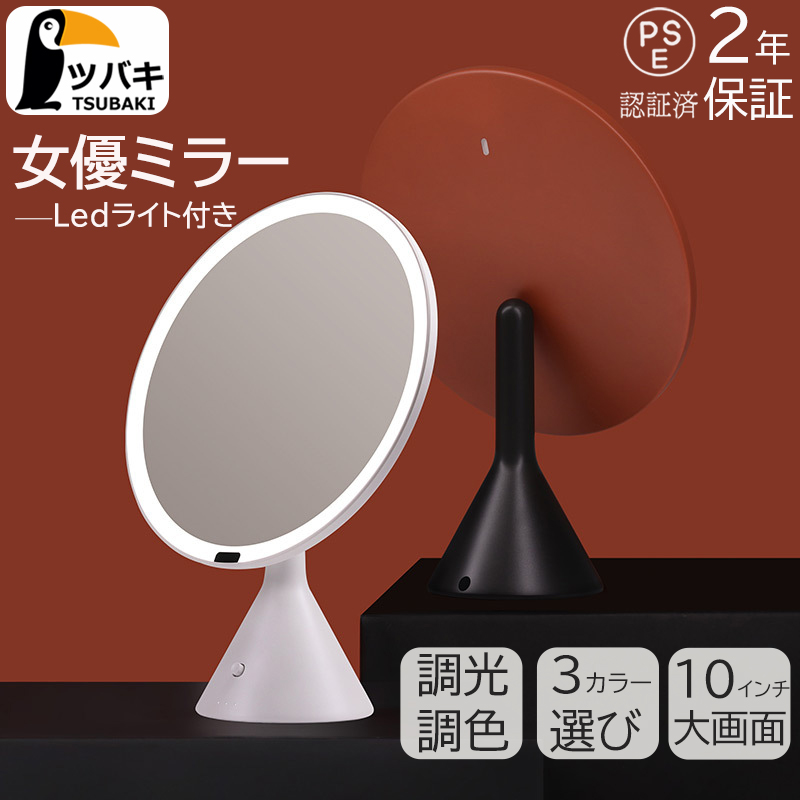 MUID 女優ミラー 円型 大画面10インチ LEDミラー 無段階調光 3色モード 化粧鏡 人感センサー 化粧ミラー 卓上ミラー メイクミラー 回転可能 タッチ式 USB充電