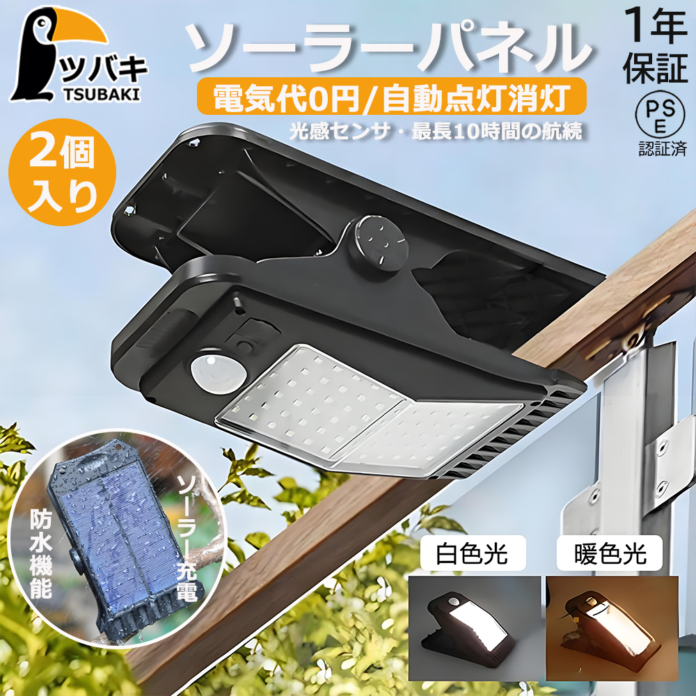 ソーラーライト 屋外 センサーライト 屋外 2個セット led人感センサー クリップ式 バッテリ大容量 ガーデンソーラーライト 壁フェンス 防水 駐車場 庭 防犯 防災