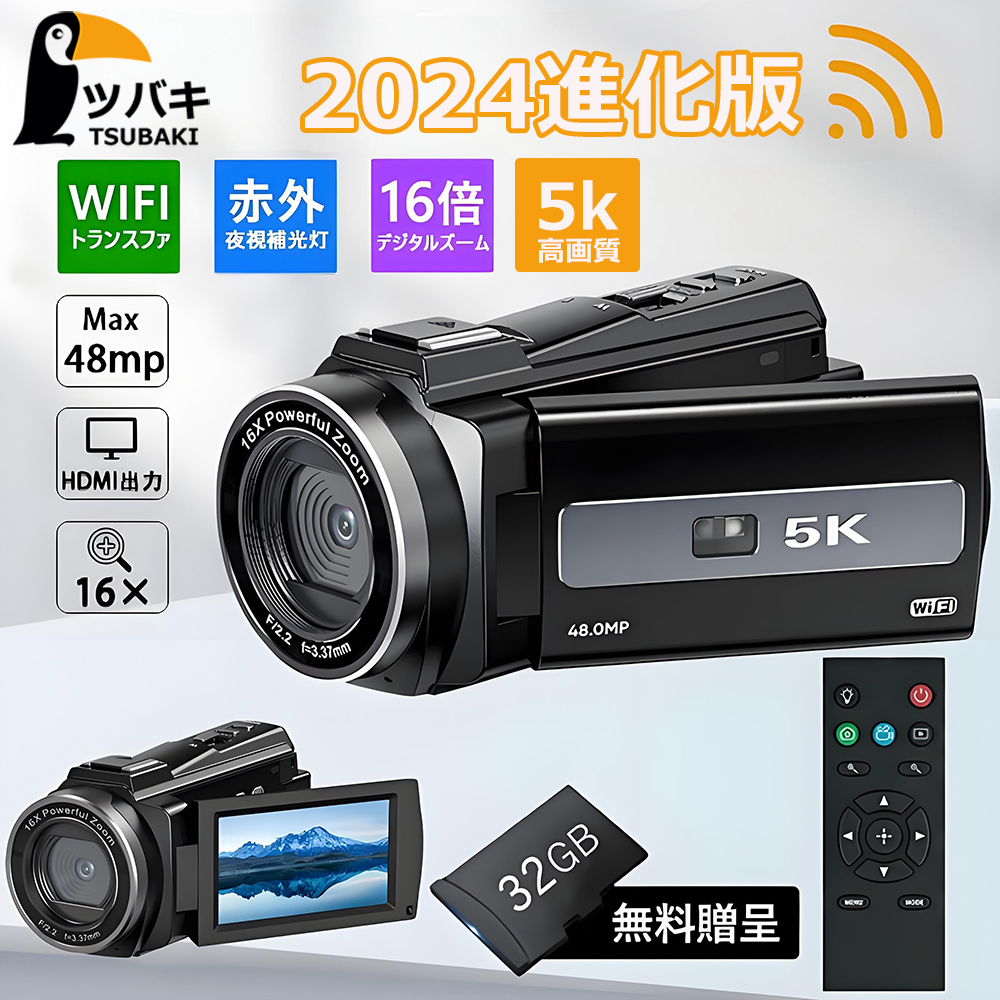 ビデオカメラ 2.7K 4K 5K 4800万画素 小型 DVビデオカメラ 日本製センサー 手ぶれ補正 16倍デジタルズーム デジタルビデオカメラ 手ぶれ補正 3.0インチ 2024