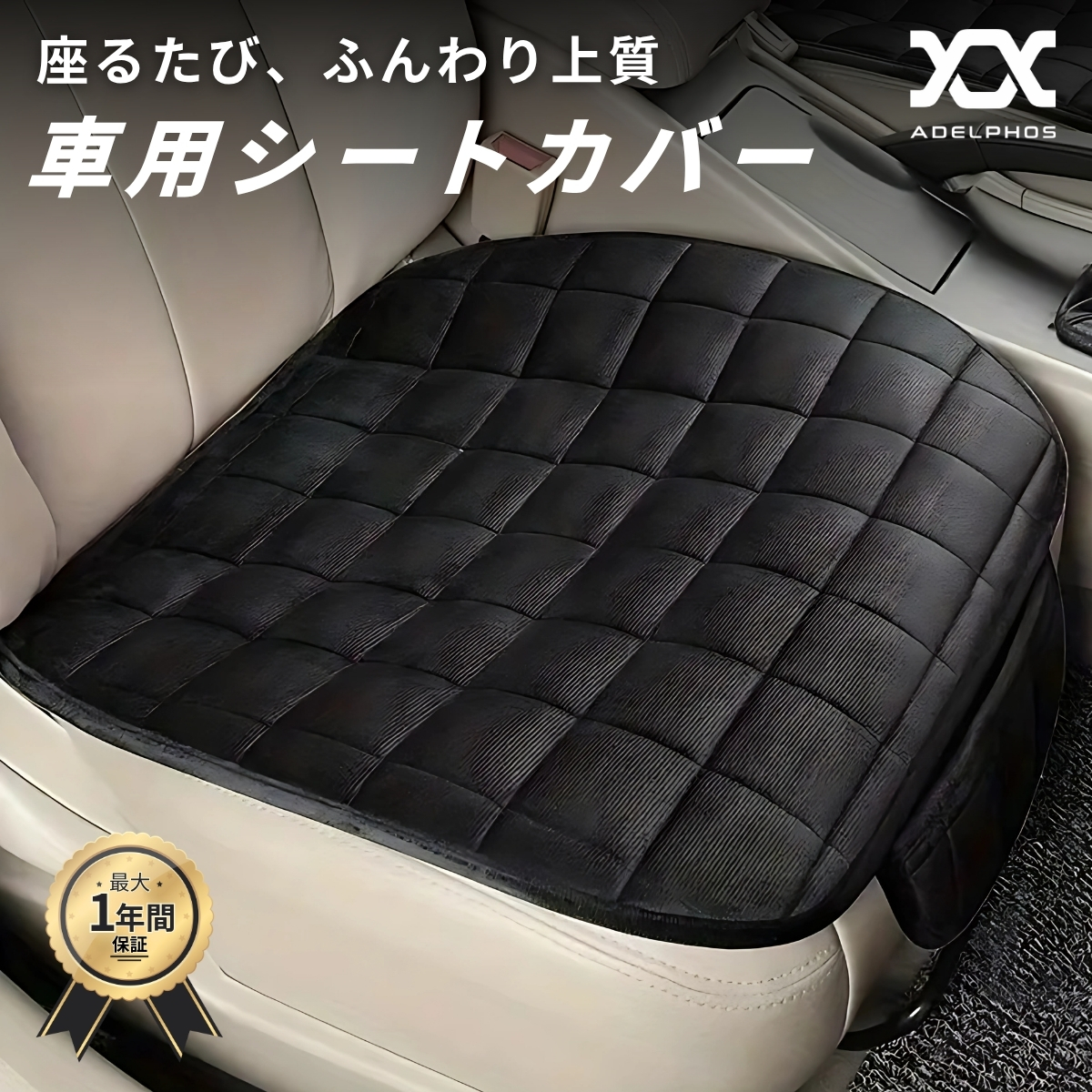 車用シートカバー 座面クッション 座面のみ 高級ベルベット調 前席用 エアリーコットン使用 滑り止め付き スマホポケット付き 高級感アップ SEAT2[前席用]