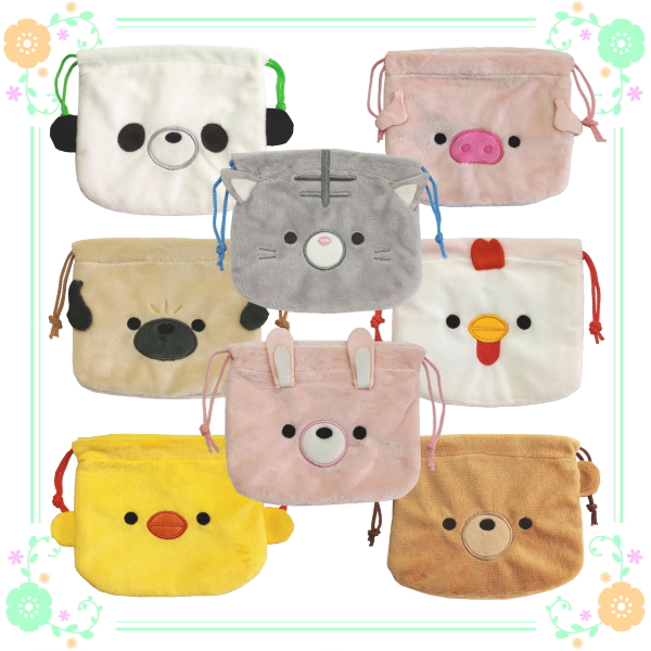 巾着袋 キュート アニマル ぬいぐるみ 巾着 くま うさぎ ぱぐ ねこ ぶた にわとり ひよこ ぱんだ 小物入れ ふわふわ もちもち 袋 動物 全8種