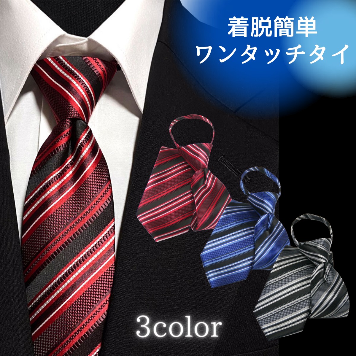 ストライプ ワンタッチタイ ネクタイ クールビズタイ クールビズ ビジネス 就活 お誕生日 ギフト