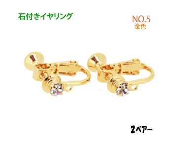 アクセサリーパーツ 金具 石付きイヤリング NO5 16KG金メッキ 金色 ゴールドカラー 2ペアー入り