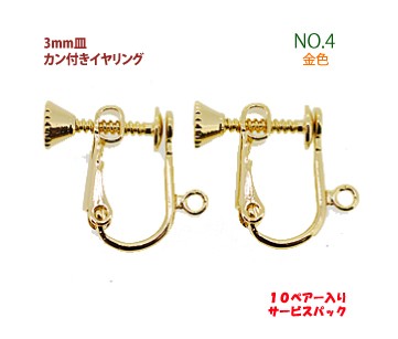 アクセサリーパーツ 金具 3mm皿カン付きイヤリング NO4 16KG金メッキ 金色 ゴールドカラー 10ペアー入りサービスパック