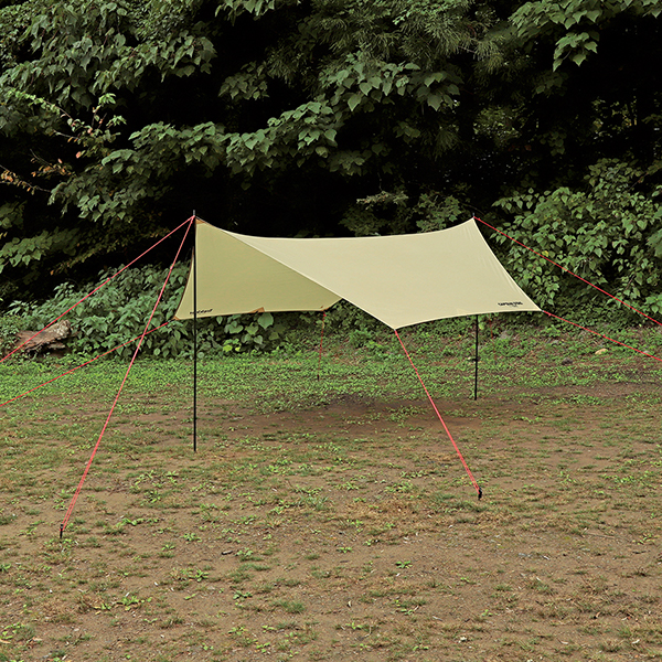 タープ:ポリエステルリップストップ210T(PU2,000mm)UV加工、撥水加工、ポール:スチール(粉体塗装)直径16mm×180cm